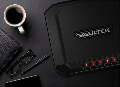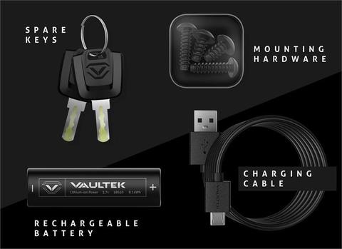 - Rugged16-gauge steel construction features Dual Anti-Impact Latches, Bolstered Interior Hinges, and Vaultek’s signature Unibody Design for strength and durability.